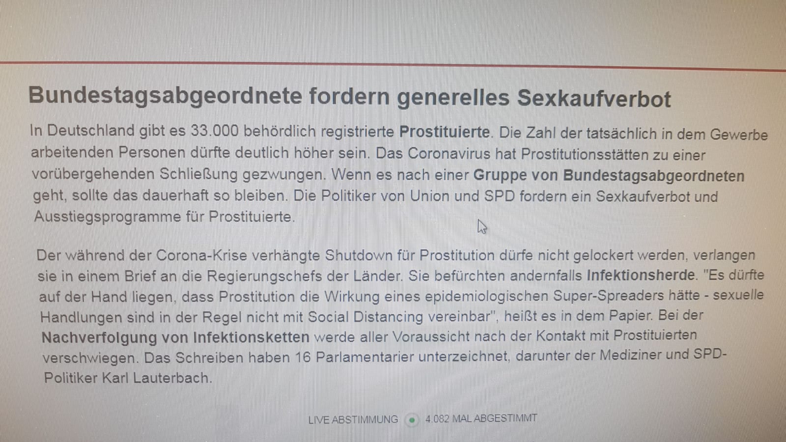 Mi riferisco alla Germania, in cui il vento antiprostituzione soffia forte, e ora il Covid19 ha dato molta legna da ardere!