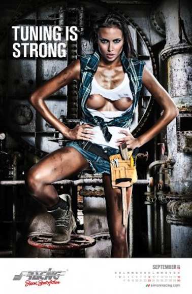 Non ci sono auto ma solo accessori di tuning. E poi lei, ultima di una serie di bellissime che dal 2004 si sono spogliate per l'azienda italiana. (max.gazzetta.it)