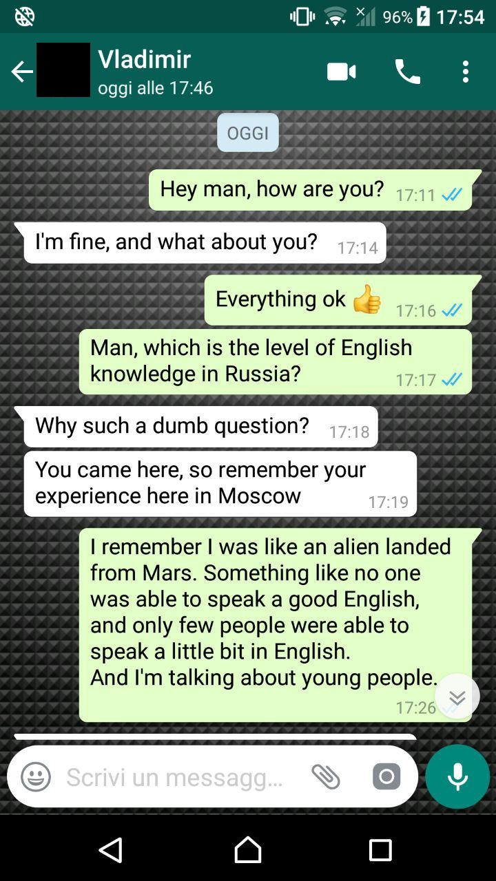 Alcuni screen della chat tra me e il mio amico moscovita: