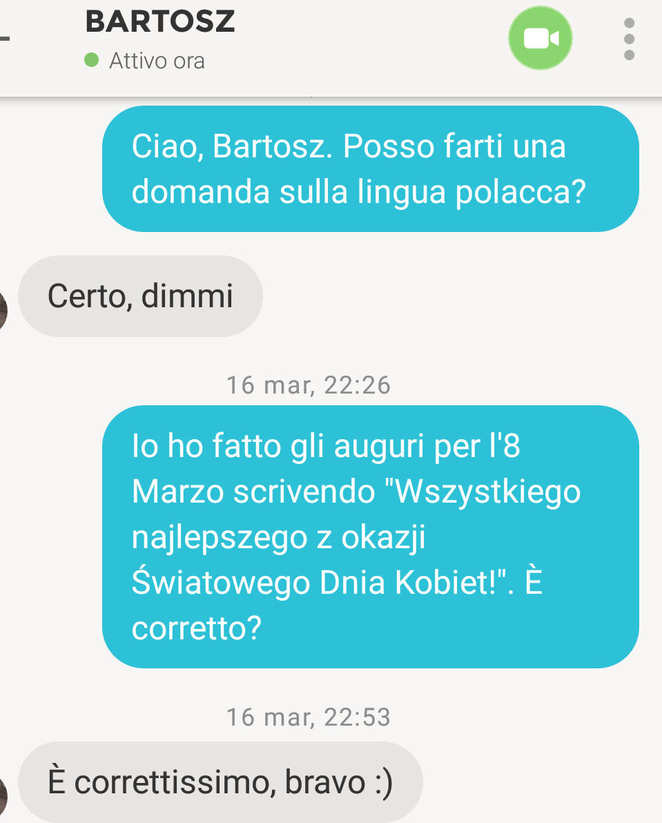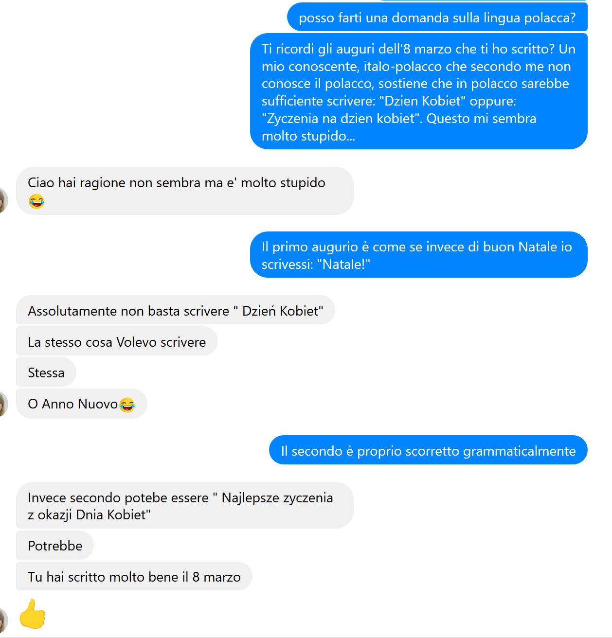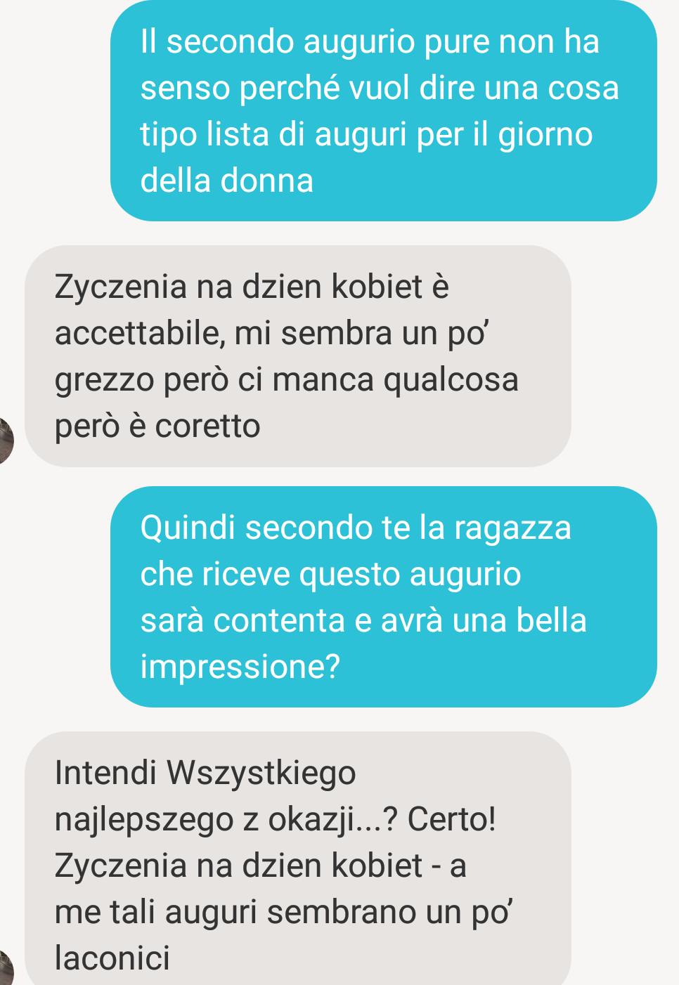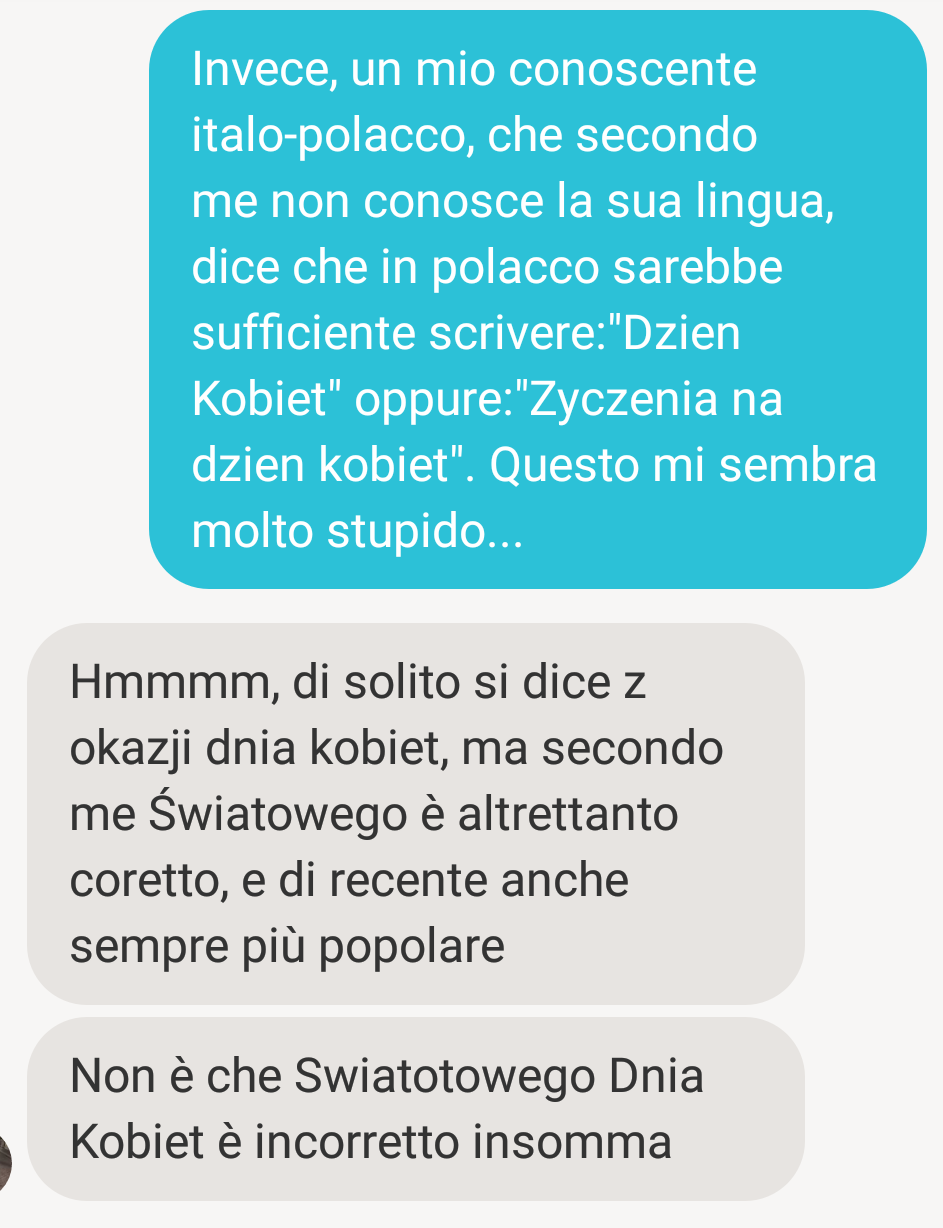 Ti allego una conversazione con una polacca a cui ho chiesto, tanto per scrupolo, prima di risponderti stamattina, se potevi in qualche modo avere ragione.