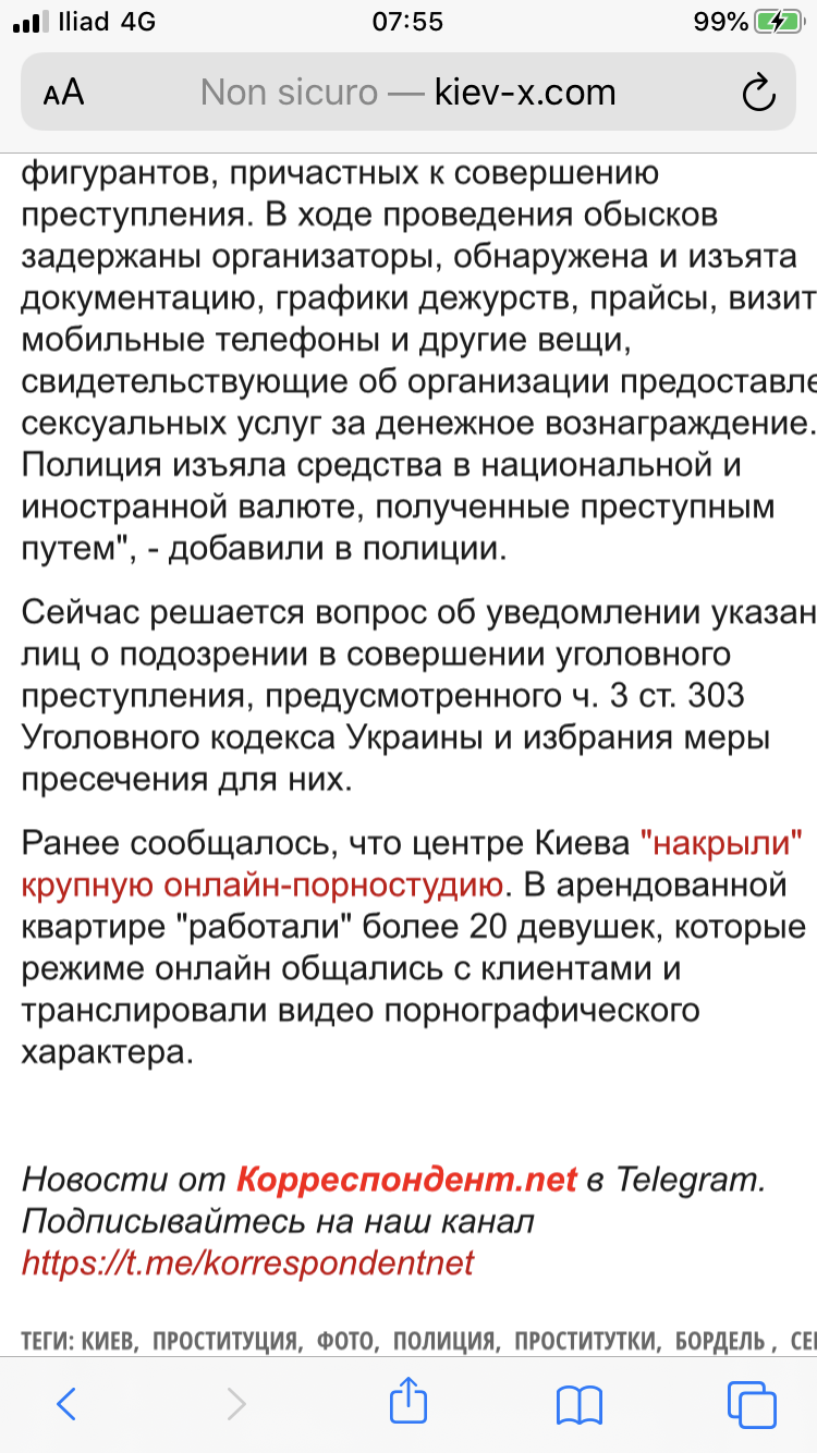 Vado a grandi linee perche parlo russo e l’ ukraino non lo conosco, La polizia ha fatto una retata, ha fermato 50 ragazze, 8 amministrtrici e 6 ragazze addette alla comunicazione coi potenziali clienti, questi sono i salon dove si tromba. Quelli dei massaggi erotici sono legali(tipo i ns cinesi)