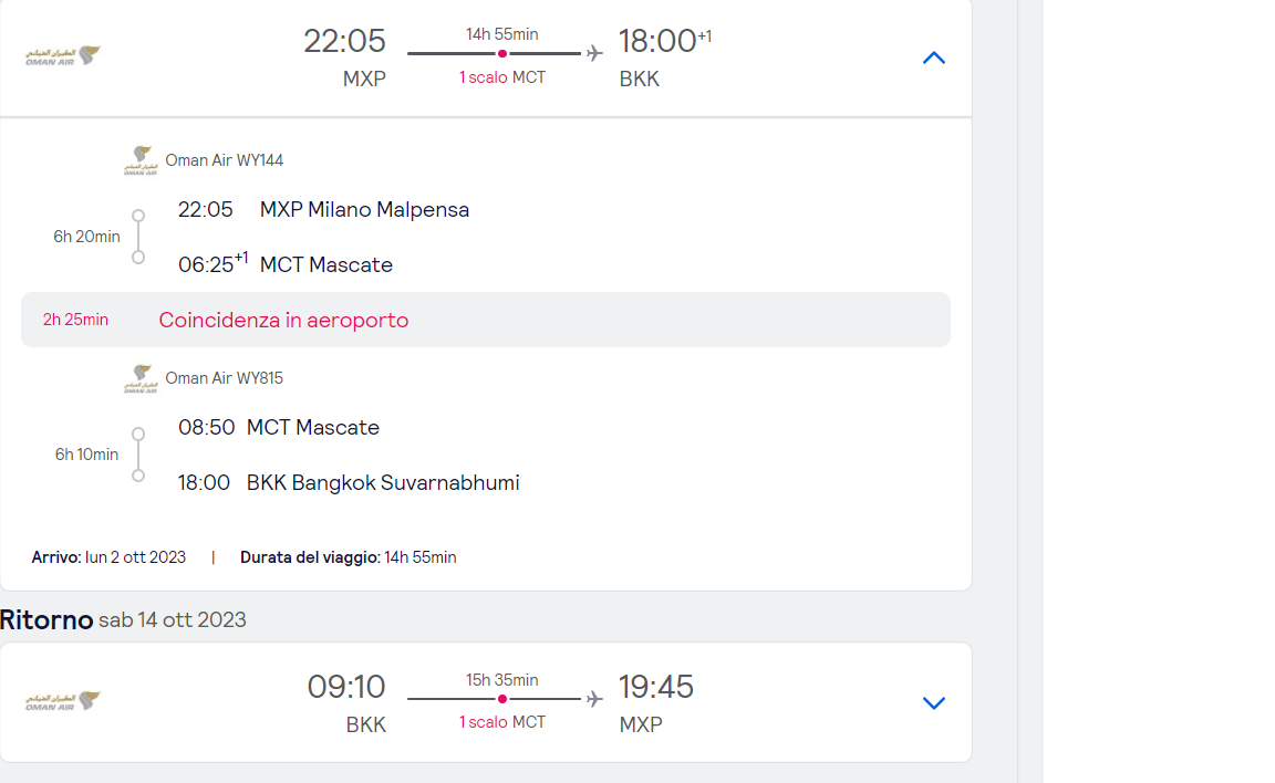 e pensare (se non erro nel 2017) ero andato in Thai stavolta per vacanza con un MXP- BKK sempre Oman a circa 380 euro a/r.