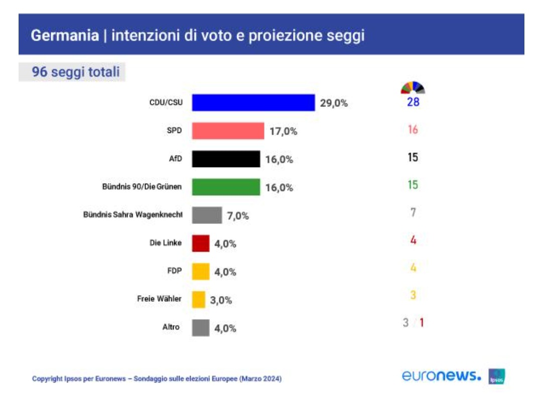 anche se si realizzasse la previsione che la cdu/csu arrivi prima alle prossime politiche per avere la maggioranza dovrà comunque formare una coalizione