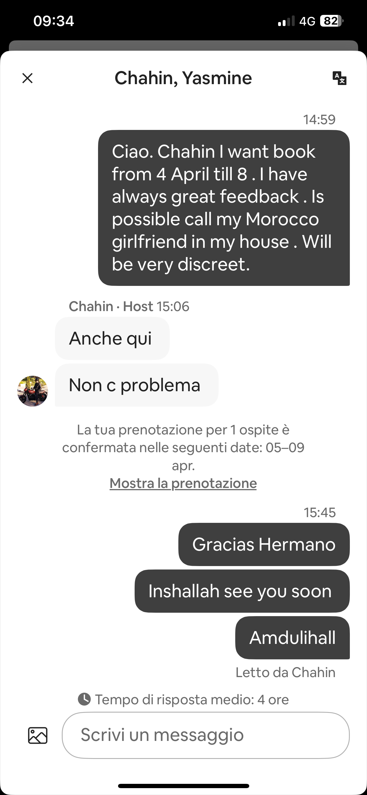 Contatti il numero su WhatsApp, solita domanda di rito della “fidanzata marocchina” e si procede con la prenotazione senza passare per Airbnb (e risparmiando “the middleman’s cut”).