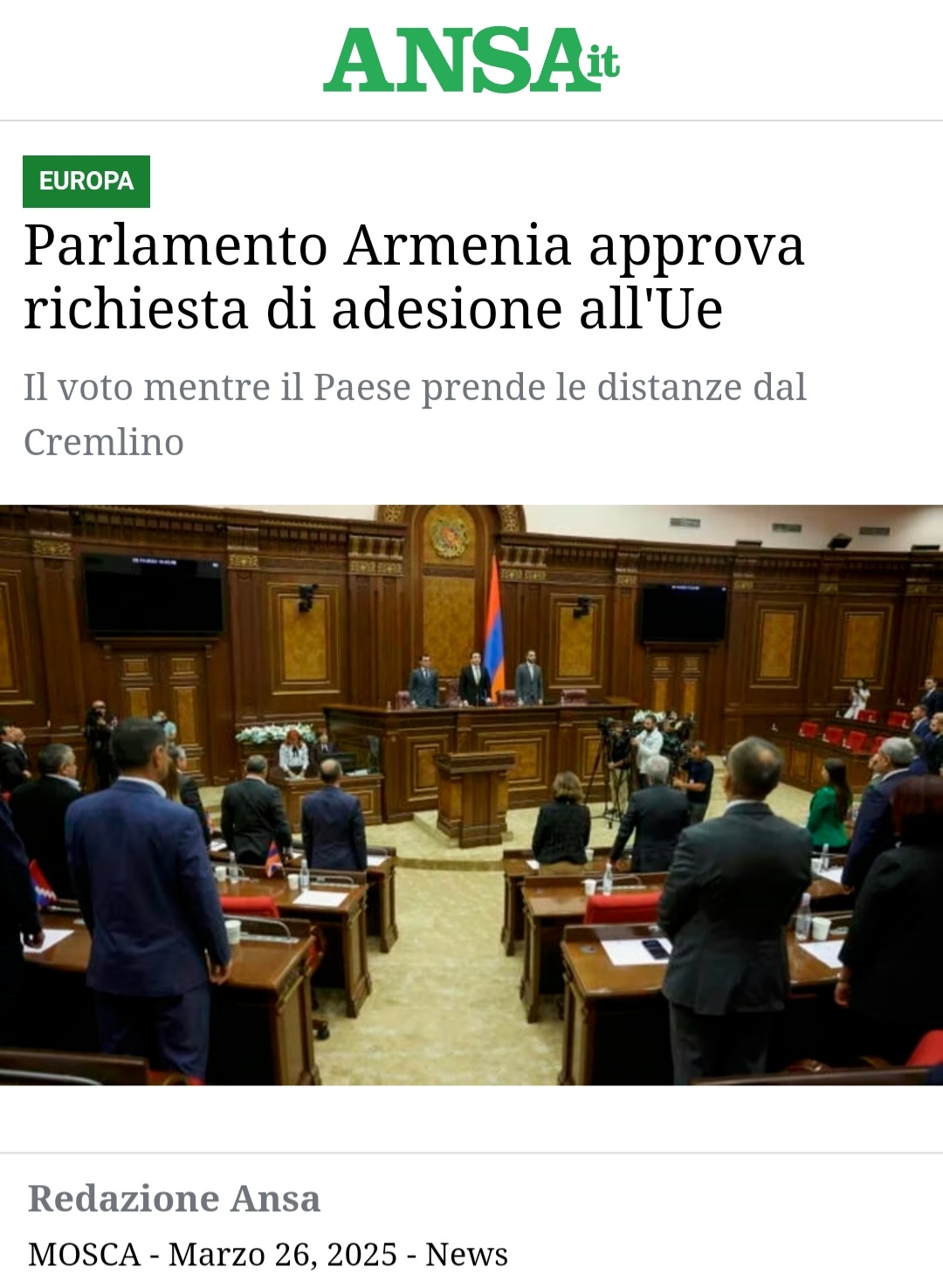 Anche l’Armenia sta avviando l’iter di adesione all’UE https://www.eastjournal.net/archives/140581 io ci andrò a fine maggio poi ti saprò dire le mie impressioni comunque ben venga anche la Georgia che invece però mi pare stia facendo marcia indietro https://www.eunews.it/2025/02/07/georgia-ue-allontanamento-da-democrazia/