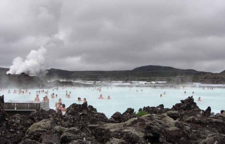 in Islanda proprio non servono! Sulla strada dall’aeroporto per Reykyavik ci fermiamo subito alla Blue Lagoon per fare una bagno rilassante all’aria aperta. E’ un posto piacevole anche se il cielo nero dalle nuvole e i fumi e le esalazioni lo rendono un po’ spettrale. Ci pensa Singa a colorarlo con il suo mini-bikini fucsia