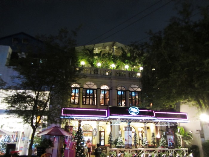 Scendo giu' e vado all'angolo, dove c'e' il coffee shop della Trung Nguyen ed aspetto..ed aspetto..qui mi puzza di pacco. Invece no, la poverina aveva dovuto attendere parecchio perche' il tassista andasse a prenderla a casa e la portasse in citta'. Pago il taxi, mi sembra sui 300mila Dong, ed effettivamente la Sam e' una bella ragazzina. Ha 27anni ma ne dimostra qualcuno in meno. Non altissima ma molto ben presentata tipo post teen-ager piuttosto sul sexy. Allora, che facciamo le chiedo? Dato che c'e' un bel ristorantino in stile bistrot di lusso proprio di fronte al Trung Nguyen, e che non credo sahihe abbia visto perche' l'hanno aperto solo da poco piu' di un anno, dove si mangia bene in un bell'ambiente ed a prezzo morigerato.