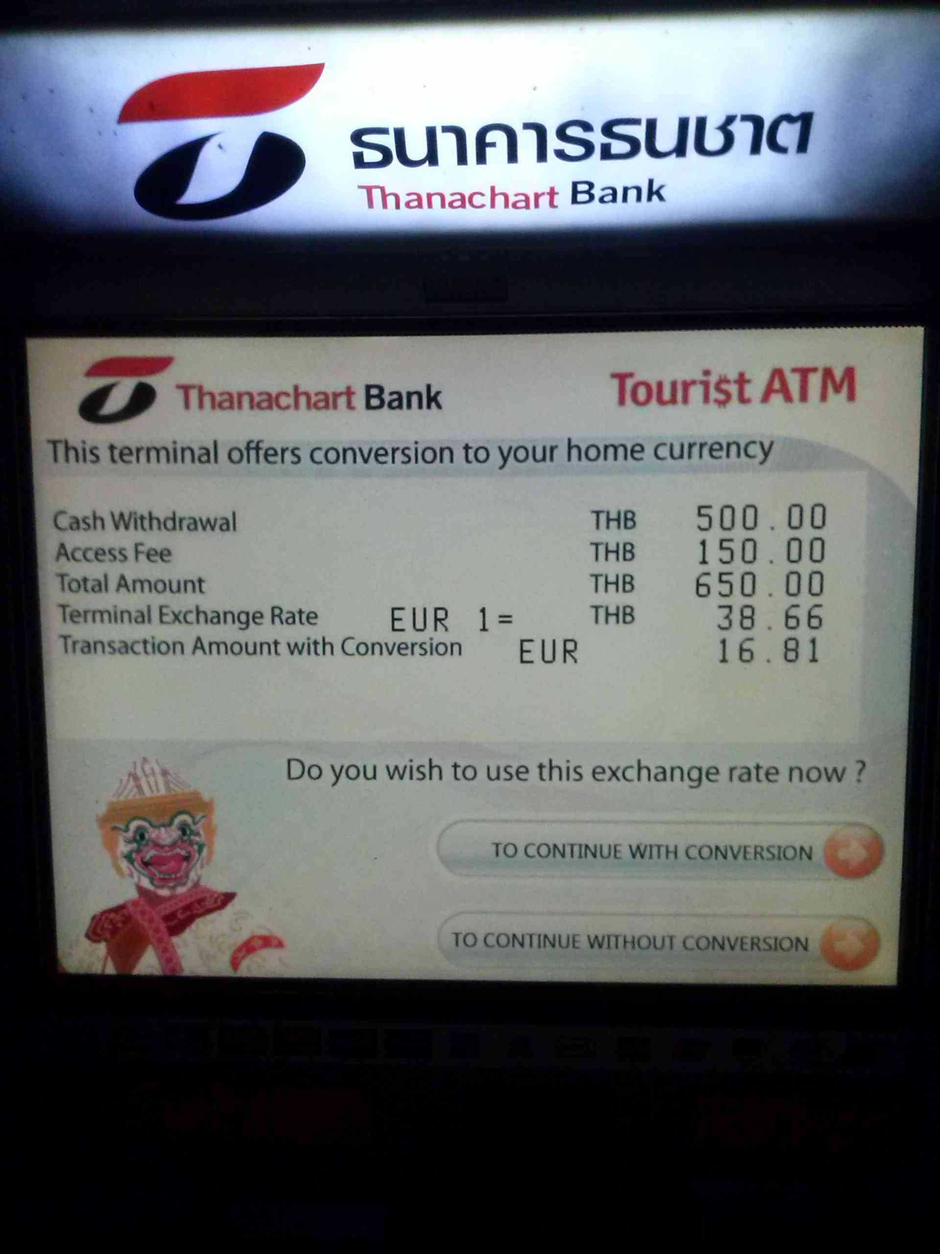 Non esiste nessun cambio sfavorevole delle banche thai se ci si fà addebitare sulla propria carta il prelievo in thb.
