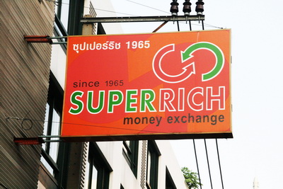 Super Rich 1965: e’ di sicuro il piu’ famoso dei cambi alternativi avendo piu’ sportelli in citta’ di cui un paio direttamente dentro le stazioni del BTS. Offre un cambio migliore di qualsiasi altra banca. Potete controllare il tasso del giorno e le location visitando il loro sito http://www.superrich1965.com