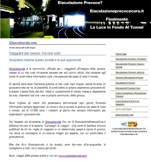 Ma l'aspetto più divertente di Gnoccatravels che noi di EiaculazionePrecoceCura.it abbiamo trovato è la sezione "Compagni di viaggio". Una sorta di bacheca annunci pubblicati da chi ha voglia di viaggiare in un determinato paese a caccia di gnocca, ma cerca un compagnio di avventura magari più esperto, con cui condividere il gnoccatravel.