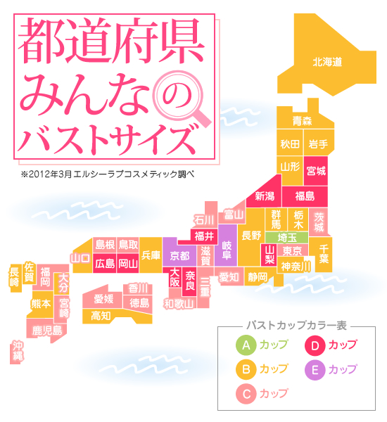Una coppa A rappresenta un seno molto piccolo, e come indica la mappa, è la taglia più diffusa nella sola prefettura di Saitama, vicino Tokyo.