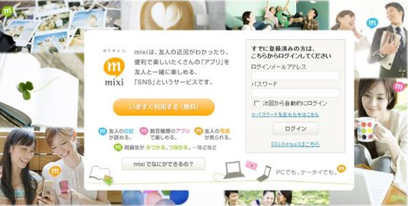 Anche in Giappone da diverso tempo hanno preso piede i Social Nework e negli ultimi anni il più popolare è stato Mixi (http://www.mixi.jp/) che purtroppo, tramite un particolare sistema di registrazione, permette l’accesso esclusivamente ai possessori di un telefono cellulare giapponese tagliando fuori tutti coloro che risiedono all’estero.